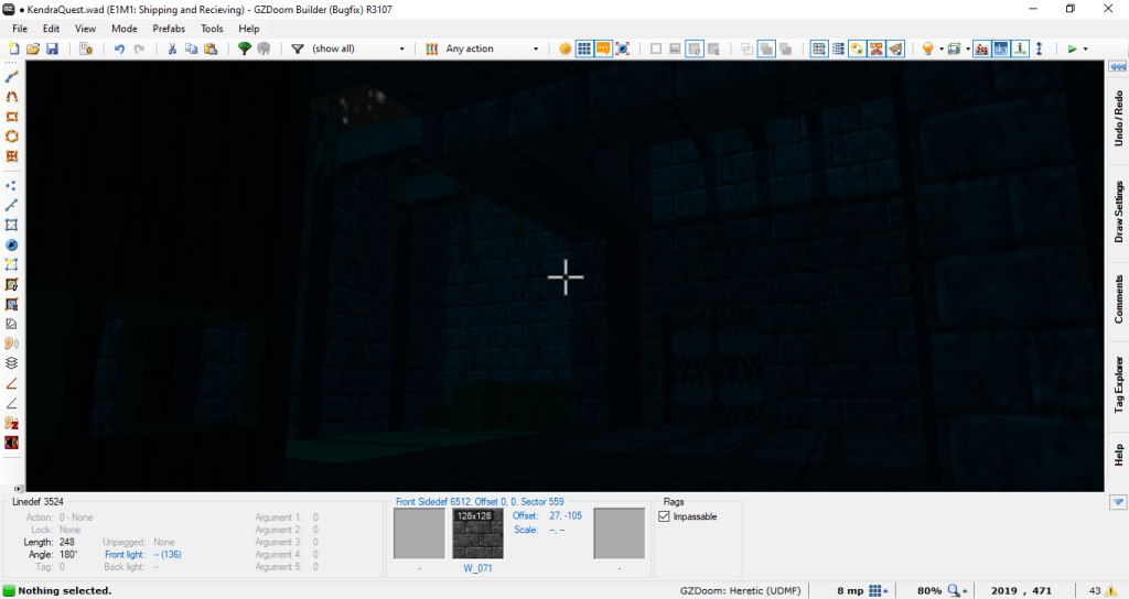 I’ve finished the groundwork for a Heretic megawad / mod. There’s been plenty of modifications to the base game (weapon replacements, new enemies, item replacements, item re-balancing, new power-ups, new special effects, etc…) and the next step is to start creating some impressive levels to go with all the changes.