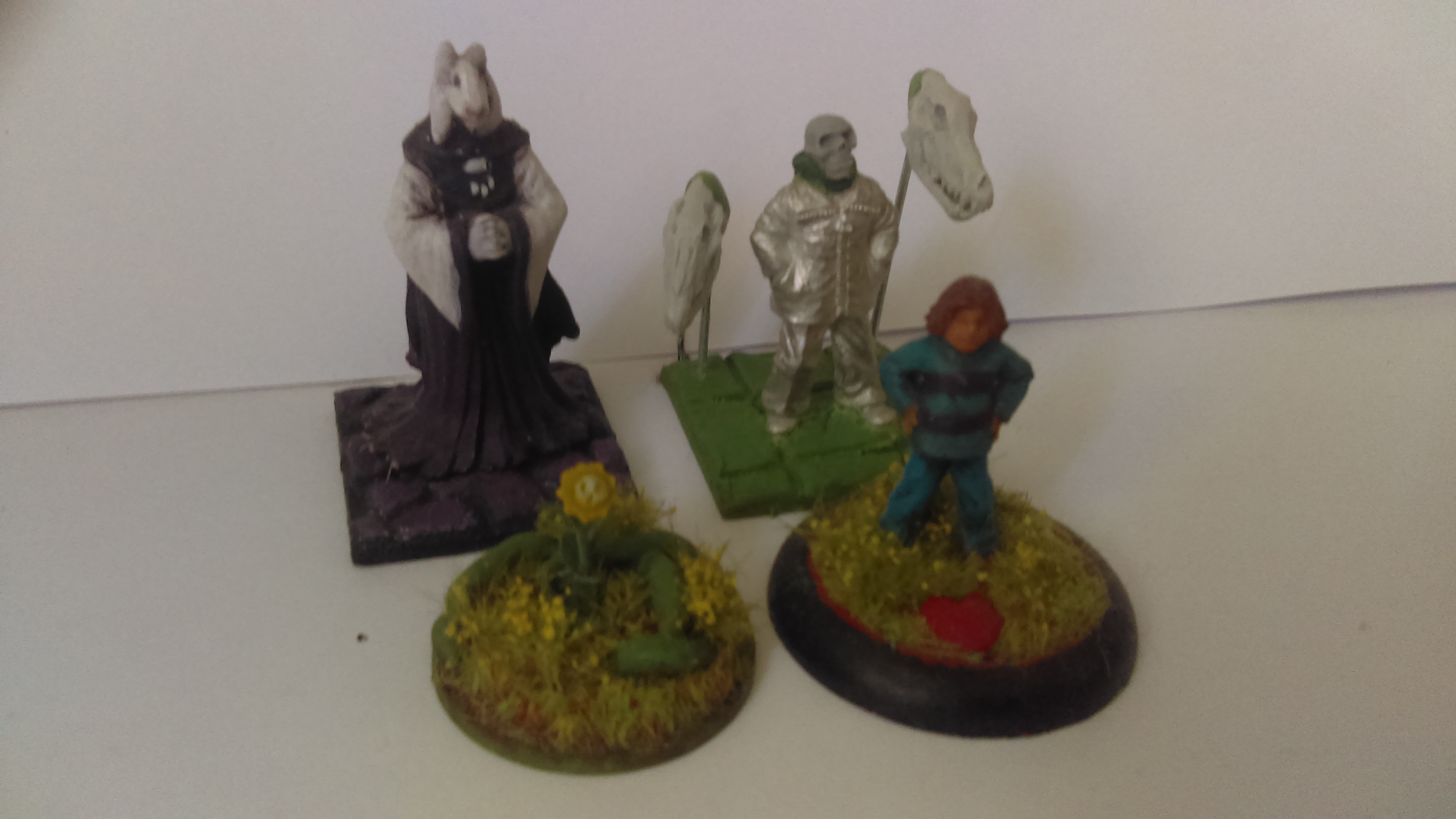 The child, Toriel and Sans are converted from Reaper models. Flowey is made from train set scenery and a lot of green stuff.