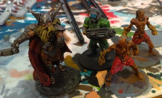 – Nazi Supersoldier on the left is from Dust Tactics, a