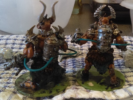 Not so keen on the ‘Imps’ (Mantic’s Tortured Souls on the right of the last picture), I think I’ll re-do them. Perhaps a lighter blue for their loin clothes.