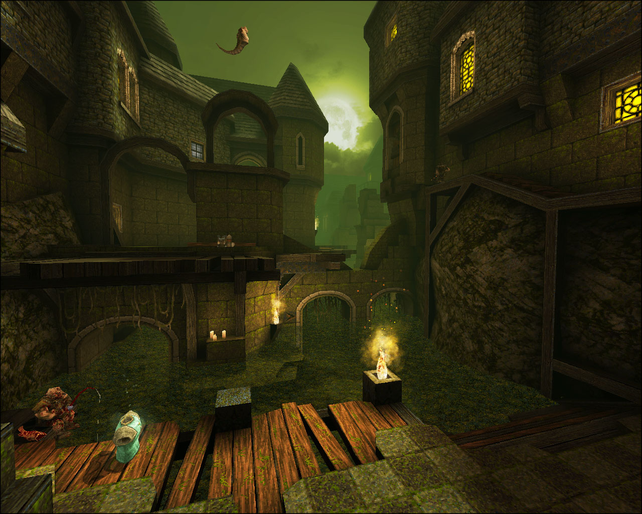 Masque of the Red Death opens with a desperate battle against huge numbers of knights, death knights, fiends and scrags. The beginning is one of the hardest sections and if you’re not a master of monster infighting the fight is almost unwinnable. It gets easier as you pick up new weapons but the battles against huge numbers of monsters carry on throughout the level. The architecture is impressive but vanilla. It doesn’t make you wonder whether you’re playing a next gen game in the way that limit-breaking ‘Quake+’ levels do. It’s most definitely a Quake level.