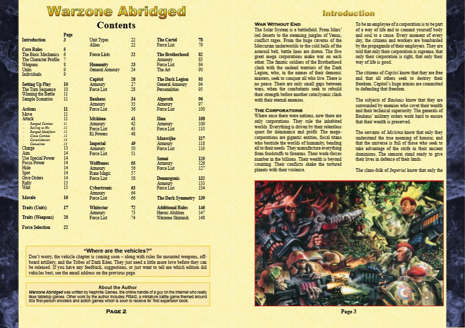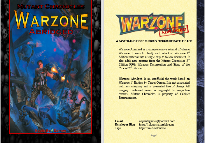 Warzone was a miniatures game made by Target Games in the mid-90s. The Warzone / Mutant Chronicles IP is currently owned by Paradox Entertainment. Warzone Abridged is a fan-made rewrite of Warzone 1st Edition updated for the latest fluff in the Modiphius RPG.