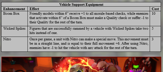 The vehicle armoury has since been moved and placed with the infantry weaponsThese pictures are subject to change, but a boom box that scares demons with loud Dad Rock was an obvious addition to the Lost’s vehicle sectionNew special weapons next to the brand new vehicle only weapon list