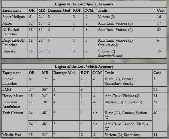 Have a snapshot of an FRAG Episode 2′s Lost Legion expanded army list: