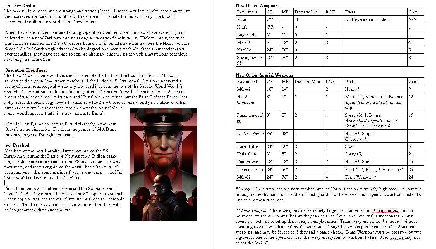 Currently writing rules for the “Not-Wolfenstein” SS Paranormal Division, now renamed to the New Order. They should play quite differently to the other lists. While running about firing heavy weapons is the standard in FRAG, these alt-history Nazis are (mostly) only human and have to carefully deploy weapon teams instead.