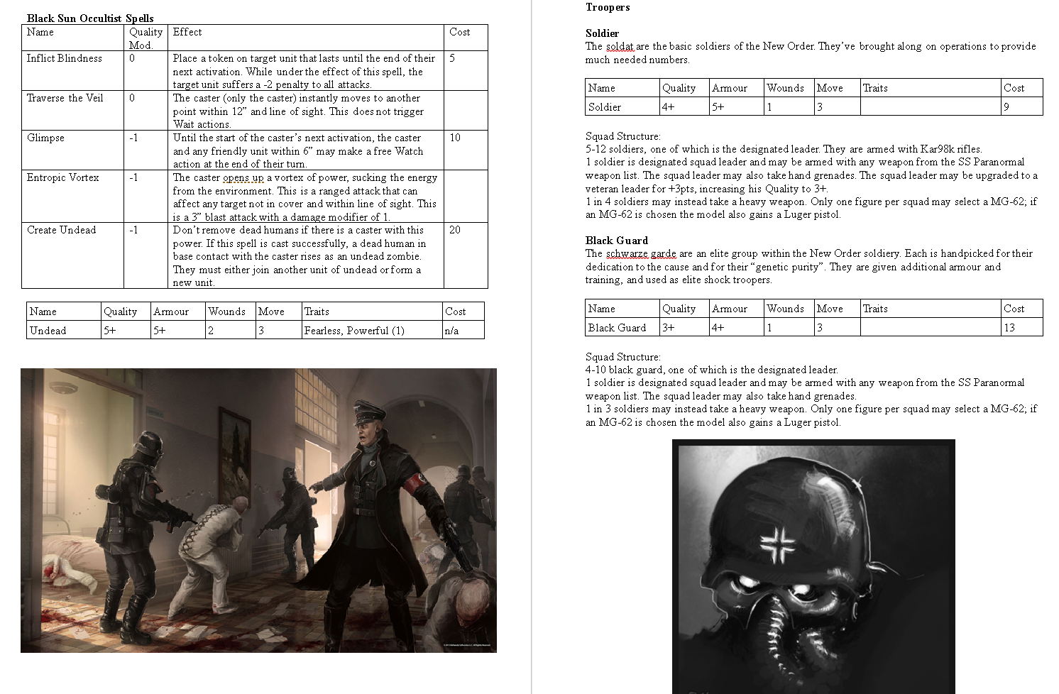 Mid-write I went looking for reference pics for the army list to help guide artists and play testers. I really shouldn’t have been surprised at what’s available for the SS Elite Guard. In the end I used screenshots from Return to Castle Wolfenstein but I’m pretty sure I’m on a watch list now.