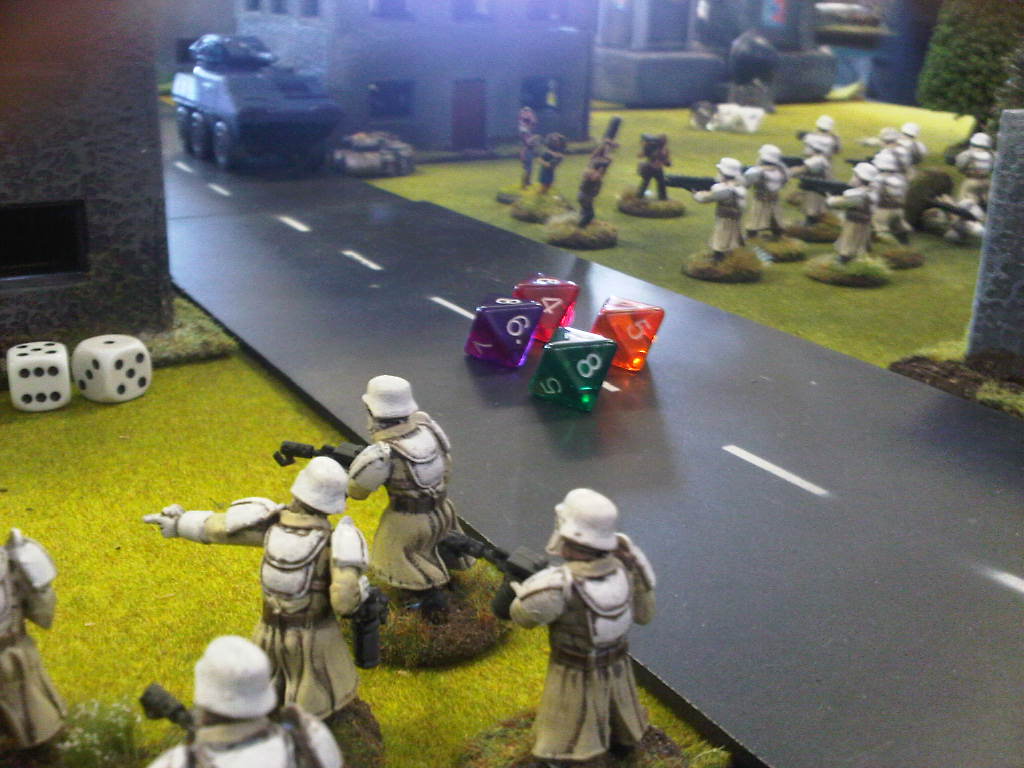 I’ve written up a booklet that contains new armies and quick reference lists for existing armies (high power armies like the Darghaur aliens have a LOT of modifiers). Every army is based on existing miniatures (The Scene UK, Ground Zero Games, Critical Mass Games, Slap Miniatures, and Vanguard Miniatures).